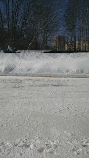 I really admire how the Kazanis deal with the snow and the cold. When I walk home from the Metro station in the evenings, there are kids out on the swings on the playground and their parents are giving them pushes. And today when I walked to the store, two little kids were having a great time digging out the little merry-go-round which is buried under 3 feet of snow. Nothing tops the people here from going out to get fresh air. They bundle up their babies and take them for walks. And it’s been below freezing for 3 solid months now. More power to them. They don’t let the weather control their lives.