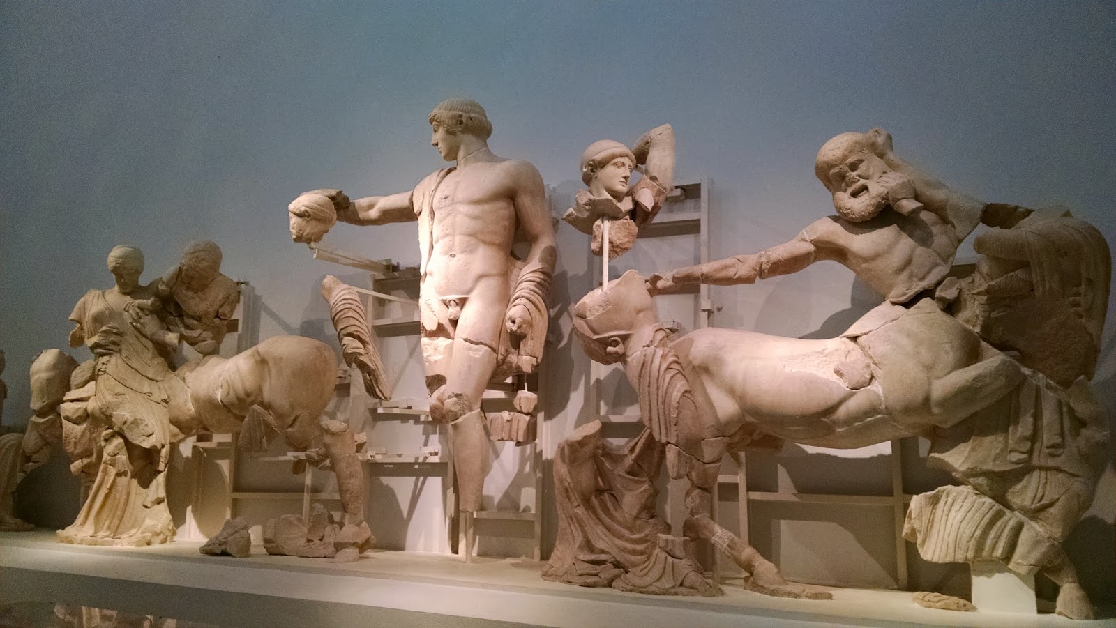 After breakfast I first walked to the shop to get a new battery for my watch. lo and behold, the battery’s not the problem. The watch is broken. I’ll have to rely on my phone then. Then I walked down to the Jewish Museum. It was very well-done and underscored the role many Greek Christians played in saving Jews lives during the Nazi period. After the Museum, I walked up to Syntagma Square where a great concert was going on. It was a female singer with four instrumentalists and the were very good. I listened for almost an hour before I walked across the square to the Parliament building and got there just as the guards had changed and the first ones were walking away in their little tutus and fuzzy shoes. I’ll post a picture after this. Then a folk dance group started performing so I watched them for awhile. Across the street were some demonstrators, but for the life of me, I couldn’t tell whether they wanted to keep immigrants out of Europe or if they wanted Europe to take more immigrants in. The guy was speaking in English and I STILL didn’t understand what he wanted! Then I walked down the pedestrian zone for a bit, but decided I should head back to the Acropolis Museum before it closed, because I knew it wouldn’t be open tomorrow or the day after. I got there at 2:10 and when they told me that they would close at 3 today, I figured my time would be better spent out in the sunshine anyway.